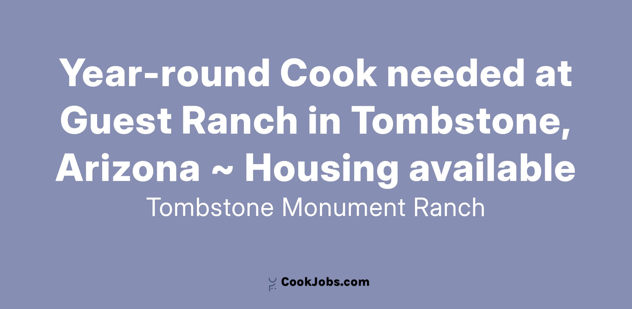 Tombstone Monument Ranch is looking for a year-round Ranch Cook. The ranch is located 2.5 miles outside the town of Tombstone, Arizona and hosts a maximum of about 50 guests.